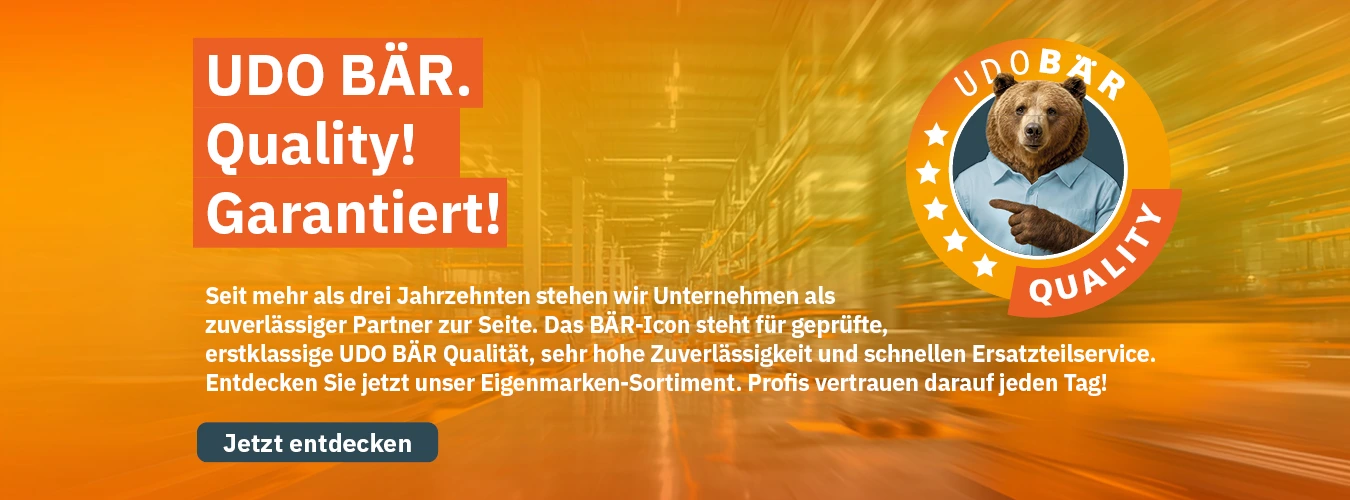 Neben der schnellen und kostengünstigen Beschaffung haben Sie stets unsere Marken, aktuellen Topseller und Angebote im Blick. Unser Katalog kann online bestellt und in Form eines Blätterkataloges eingesehen werden. Artikel lassen sich daraus einfach in den Warenkorb legen. Mit unserer Direktbestellung sparen Sie wichtige Minuten, wenn Ihnen die entsprechenden Artikelnummern vorliegen. Zusätzlich finden Sie viele nützliche Ratgeber. Regelmäßig informiert Sie unser Newsletter über Angebote und wichtige Branchen-Themen. Bei Bestellung im Online-Shop von UDO BÄR bedarf es keiner Mindestbestellmenge. Zudem sparen Sie sich innerhalb von Deutschland die Versandkosten. Wir sind TRUSTED SHOPS zertifiziert und zur Sicherheit Ihrer Daten setzen wir eine Verschlüsselung mit SSL ein. Wir als Unternehmen sind seit vielen Jahren gemäß DIN EN ISO 9001:2015 zertifiziert und stellen damit sicher, dass unser Qualitätsanspruch nicht nur Theorie bleibt, sondern von allen Mitarbeitern aktiv gelebt wird.Unser Versprechen: Wir liefern Qualität für Unternehmen