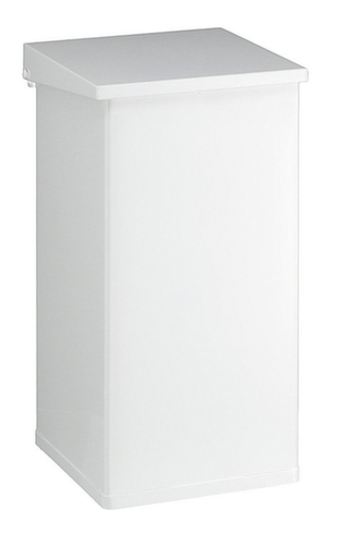 Die wichtigsten Maße des Abfallbehälters Carro Lift auf einen Blick:Zum Aufstellen auf dem Boden. Behälter feuerfest. Mit Klappdeckel - die Öffnung erfolgt manuell. Schließt gedämpft für eine ruhige Arbeitsatmosphäre. Einfache Entleerung über Deckel. Korpus aus Aluminium mit schlag- und kratzfester Pulverbeschichtung in weiß. Deckel aus Aluminium in weiß.