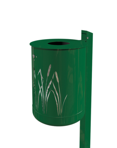"longDescription": "<h2>Abfallbehälter</h2><strong>im ansprechenden Schilfdesign</strong><br><ul><li><strong>Absolut wetterfest und langlebig</strong> - aus feuerverzinktem Stahlblech</li><li><strong>Robust</strong> - Deckelscheibe mit innenliegendem Scharnier</li><li><strong>Kein Wasserstau</strong> - gelochter Boden zum Ablaufen von Regenwasser</li></ul><br><strong>Sie haben die Wahl:</strong><br><ul><li><strong>Zur Wand- oder Pfostenmontage</strong> - beides sofort einsatzbereit mit Befestigungsmaterial und Pfosten</li><li><strong>Mehr Farbe</strong> - zusätzlich mit Pulverbeschichtung</li></ul>",
