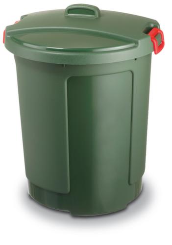 "metaDescription": "Abfallbehälter mit Klemmverschlüssen am Deckel - HxØ 640x390-490mm, Korpus PP grün, Deckel PE grün",