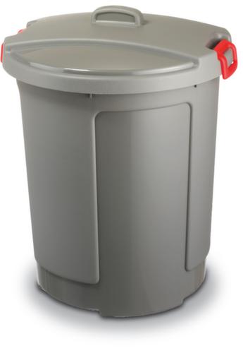 "metaDescription": "Abfallbehälter mit Klemmverschlüssen am Deckel - HxØ 640x390-490mm, Korpus PP grau, Deckel PE grau",