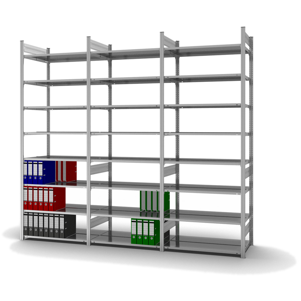 Die wichtigsten Maße des hofe Steckregals auf einen Blick:Auf 8 Ebene(n) mit Böden aus Stahlblech / 8 Ordnerhöhen könne Sie Akten, Ordner und sonstiges Büromaterial optimal organisieren. Ebenen mit steckbarer Mittel-Anschlagkante und seitlicher Bodenabkantung der oberen Fachebene gegen das Herausfallen von Ordnern. Fachhöhen je nach Einsatzzweck und Ihrem Bedarf im Raster von 25 mm verstellbar. Nutzung beidseitig - flexible Aufstellung frei im Raum möglich. Hohe Stabilität durch Aussteifungstraversen. Konstruktion aus Stahl. Ständer mit korrosionsschützender Zinkbeschichtung. Ebenen mit korrosionsschützender Zinkbeschichtung.