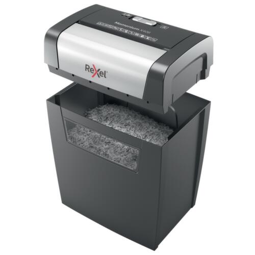 Die wichtigsten Maße des Aktenvernichters Momentum X406 auf einen Blick:Sicherheitsstufe: Die Sicherheitsstufe P-4 lässt keinen Streifenschnitt zu. Jeder Partikel darf an einer Seite höchstens 6 mm breit sein. Das erfordert für ein DIN A4-Blatt eine Zerkleinerung in mindestens 420 Teile. Leistung 160 W.