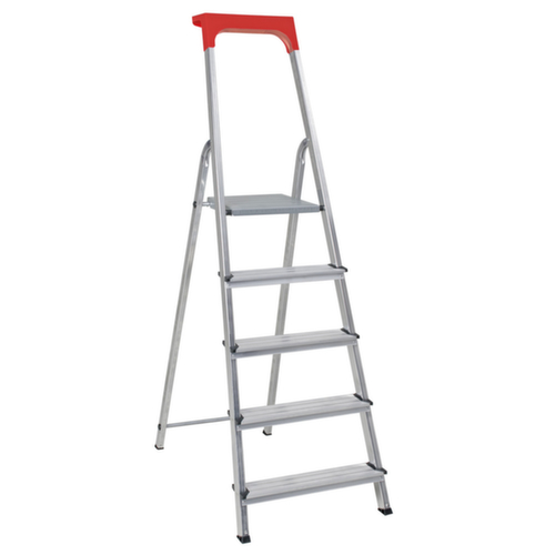 "longDescription": "<h2>Alu-Stufenleiter</h2><strong>einseitiger Aufstieg</strong><br><ul><li><strong>Platzsparend zusammenklappbar</strong></li><li><strong>Trittsicher</strong> profilierte Stufen</li><li><strong>Sichere Anwendung</strong> durch Sicherheitsbügel</li><li><strong>Standfest</strong> - mit rutschfesten Füßen</li><li><strong>Leicht und robust</strong> - aus Aluminium</li><li>Belastbar bis 150 kg</li></ul><br><strong>Sie haben die Wahl:</strong><br><ul><li><strong>Alles direkt griffbereit</strong> - wahlweise mit Ablageschale und Eimerhaken</li></ul>",