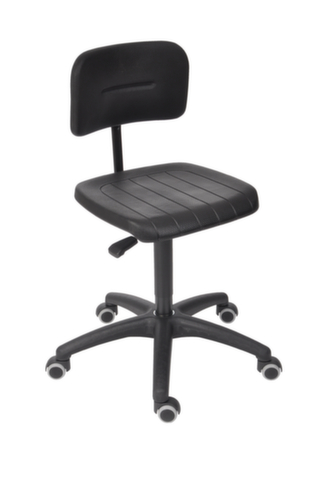 "longDescription": "<h2>Arbeitsstuhl</h2><strong>Rückenlehne pendelnd gelagert und höhenverstellbar</strong><br><br><strong>Sie haben die Wahl:</strong><br><ul><li><strong>Pflegeleicht oder bequem gepolstert</strong> - drehbare Sitzfläche aus Buchenschichtholz, PU-Schaum oder mit Kunstlederbezug</li><li><strong>Mobil oder stationär</strong> - Fußkreuz mit lastabhängig gebremsten Doppellaufrollen oder mit Gleitern mit und ohne Fußring</li><li><strong>Noch robuster</strong> - Fußkreuz aus Stahl mit Lackierung oder aus Kunststoff</li></ul>",