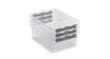 Aus bruchsicherem Polypropylen in transparent. Wände geschlossen. Deckel. Mehrfach stapelbar. Temperaturbeständig -40 °C bis +100 °C.