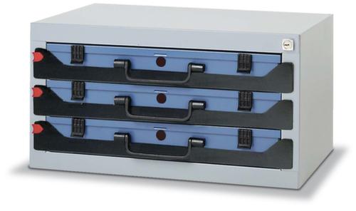 "metaDescription": "Aufbewahrungsturm - HxBxT 290x555x350mm, Korpus RAL7000,3 Koffer, Stahl, Koffer RAL5007, Kästen farbig",