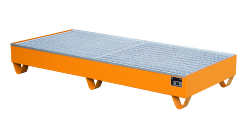 "longDescription": "<h2>Auffangwanne</h2><strong>für die sichere Lagerung unter Dach</strong><br><ul><li>Geeignet für wassergefährdende und brennbare Stoffe</li><li>Robuste Stahlblechkonstruktion</li><li><strong>Für den Staplertransport geeignet</strong> durch praktische Unterfahrhöhe</li></ul><br><strong>Sie haben die Wahl:</strong><br><ul><li><strong>Langlebig oder auffällig</strong> - Oberfläche feuerverzinkt oder mit farbiger Lackierung</li><li><strong>Für noch mehr Auffangvolumen</strong> wahlweise mit herausnehmbarem Gitterrost</li></ul><br><strong>Bestimmungen!</strong><br><br>Bauweise der Wannen behördlich zugelassen. Einsatz für gewässergefährdende und entzündbare Stoffe zur Lagerung unter Dach.<br>",