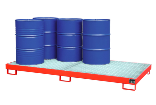 "longDescription": "<h2>Auffangwanne</h2><strong>für die sichere Lagerung unter Dach</strong><br><ul><li>Geeignet für wassergefährdende und brennbare Stoffe</li><li>Robuste Stahlblechkonstruktion</li><li><strong>Für den Staplertransport geeignet</strong> durch praktische Unterfahrhöhe</li></ul><br><strong>Sie haben die Wahl:</strong><br><ul><li><strong>Langlebig oder auffällig</strong> - Oberfläche feuerverzinkt oder mit farbiger Lackierung</li><li><strong>Für noch mehr Auffangvolumen</strong> wahlweise mit herausnehmbarem Gitterrost</li></ul><br><strong>Bestimmungen!</strong><br><br>Bauweise der Wannen behördlich zugelassen. Einsatz für gewässergefährdende und entzündbare Stoffe zur Lagerung unter Dach.<br>",