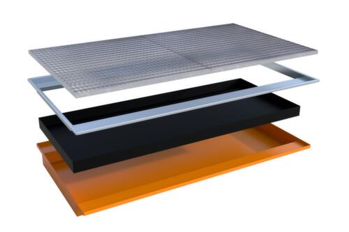 Mit der einhängbaren Auffangwanne rüsten Sie Palettenregale oder andere Regalsysteme schnell und gesetzteskonform für die Lagerung von Gefahrstoffen um. Im Gegensatz zu anderen Auffangwannen wird die Einhängewanne nicht unter das Regal, sondern direkt als eigene Ebene auf die Längstraversen aufgelegt. Durch den Überstand an den Längsseiten entsteht eine sichere Auflagefläche. Die Wanne ist damit zwischen den Längstraversen eingelassen und ein verrutschen ist nicht möglich.