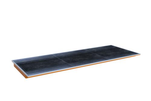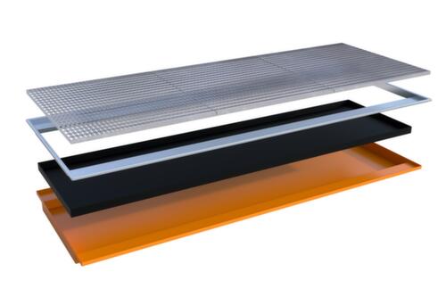 Mit der einhängbaren Auffangwanne rüsten Sie Palettenregale oder andere Regalsysteme schnell und gesetzteskonform für die Lagerung von Gefahrstoffen um. Im Gegensatz zu anderen Auffangwannen wird die Einhängewanne nicht unter das Regal, sondern direkt als eigene Ebene auf die Längstraversen aufgelegt. Durch den Überstand an den Längsseiten entsteht eine sichere Auflagefläche. Die Wanne ist damit zwischen den Längstraversen eingelassen und ein verrutschen ist nicht möglich.