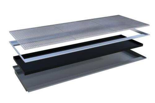 Mit der einhängbaren Auffangwanne rüsten Sie Palettenregale oder andere Regalsysteme schnell und gesetzteskonform für die Lagerung von Gefahrstoffen um. Im Gegensatz zu anderen Auffangwannen wird die Einhängewanne nicht unter das Regal, sondern direkt als eigene Ebene auf die Längstraversen aufgelegt. Durch den Überstand an den Längsseiten entsteht eine sichere Auflagefläche. Die Wanne ist damit zwischen den Längstraversen eingelassen und ein verrutschen ist nicht möglich.
