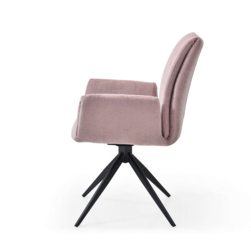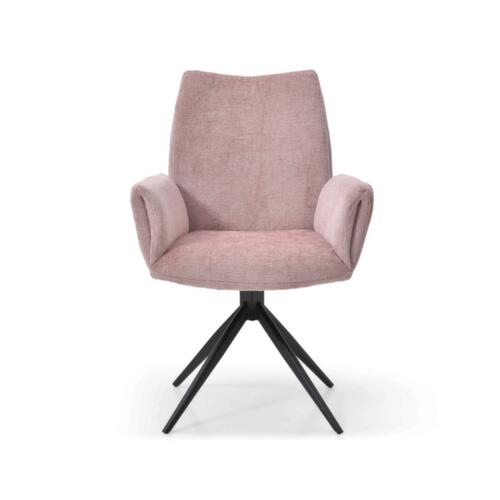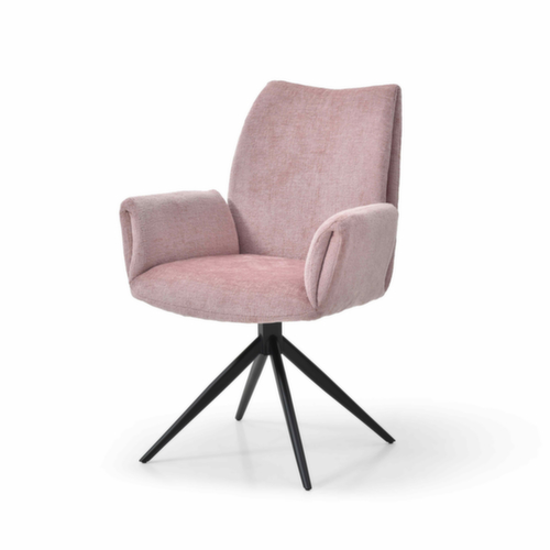 Ausstattung:Sternfußgestell aus Rundrohr-Stahl mit schlag- und kratzfester Pulverbeschichtung in schwarz. Ausführung mit starren Armlehnen. Sitz aus Hartschaum mit Polster. Sitzbezug aus Stoff (100% Polyester) in pastellpink. 360° drehbar.