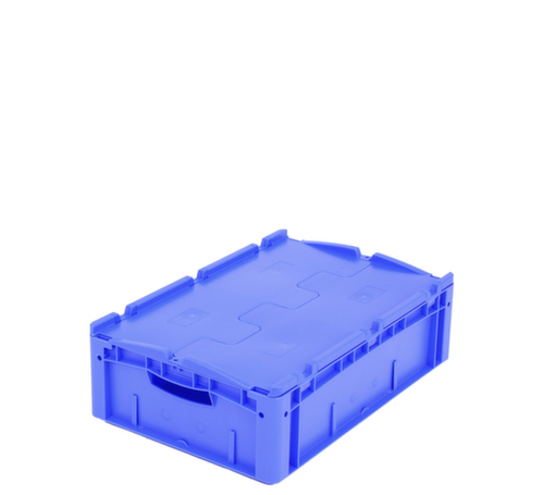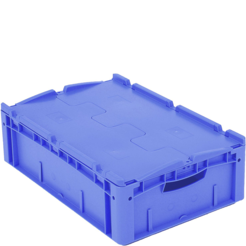 Maßlich auf die Europalette abgestimmt. Aus bruchsicherem Polypropylen in blau. Wände geschlossen, Boden geschlossen. Das Lagergut ist vor Staub und Schmutz geschützt durch den zweiteiligen Scharnierdeckel. Einfacher Transport durch Durchfassgriffe. Mehrfach stapelbar. Lebensmittelgeeignet.
