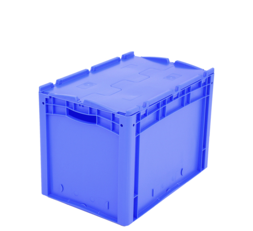 Maßlich auf die Europalette abgestimmt. Aus bruchsicherem Polypropylen in blau. Wände geschlossen, Boden geschlossen. Das Lagergut ist vor Staub und Schmutz geschützt durch den zweiteiligen Scharnierdeckel. Einfacher Transport durch Durchfassgriffe. Mehrfach stapelbar. Lebensmittelgeeignet. recycelbar.
