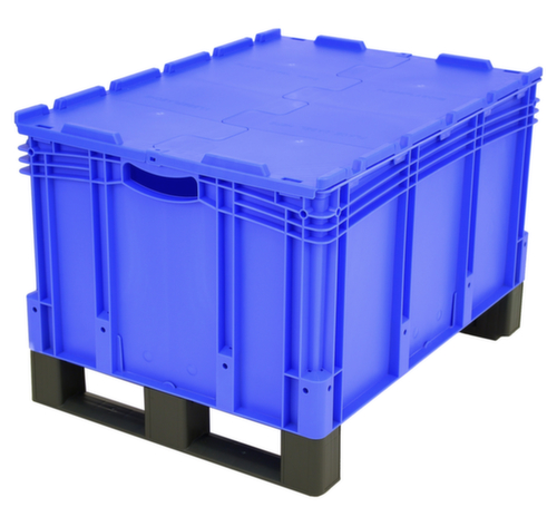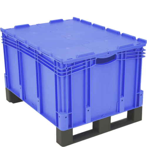 Maßlich auf die Europalette abgestimmt. Aus bruchsicherem Polypropylen in blau. Wände geschlossen, Boden doppelt verstärkt. Das Lagergut ist vor Staub und Schmutz geschützt durch den zweiteiligen Scharnierdeckel. Einfacher Transport durch Durchfassgriffe. Mit Etikettenhalter an allen Seiten. Mehrfach stapelbar. Lebensmittelgeeignet. Geeignet für verschiedene Stoffe, bitte anfragen.