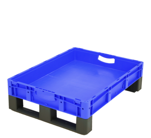 Maßlich auf die Europalette abgestimmt. Aus bruchsicherem Polypropylen in blau. Wände geschlossen, Boden doppelt verstärkt. Einfacher Transport durch Durchfassgriffe. Mit Etikettenhalter an allen Seiten. Mehrfach stapelbar. Lebensmittelgeeignet. Geeignet für verschiedene Stoffe, bitte anfragen.