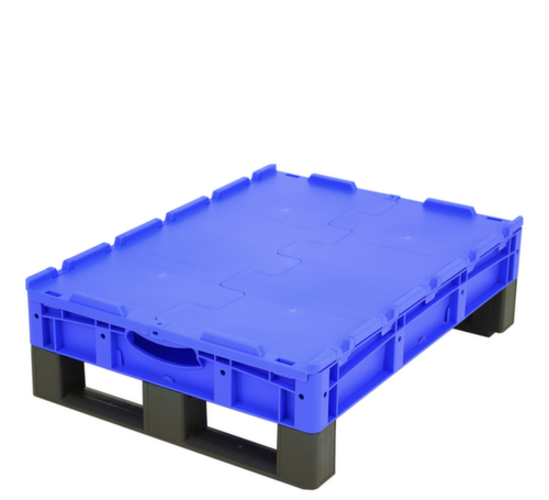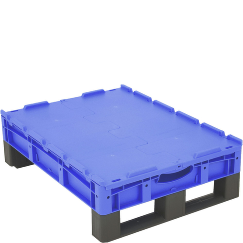 Maßlich auf die Europalette abgestimmt. Aus bruchsicherem Polypropylen in blau. Wände geschlossen, Boden doppelt verstärkt. Das Lagergut ist vor Staub und Schmutz geschützt durch den zweiteiligen Scharnierdeckel. Einfacher Transport durch Durchfassgriffe. Mit Etikettenhalter an allen Seiten. Mehrfach stapelbar. Lebensmittelgeeignet. Geeignet für verschiedene Stoffe, bitte anfragen.