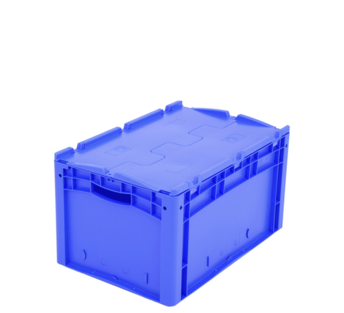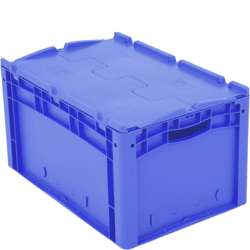 Maßlich auf die Europalette abgestimmt. Aus bruchsicherem Polypropylen in blau. Wände geschlossen, Boden doppelt verstärkt. Das Lagergut ist vor Staub und Schmutz geschützt durch den zweiteiligen Scharnierdeckel. Einfacher Transport durch Tragegriffe. Mehrfach stapelbar. Lebensmittelgeeignet.