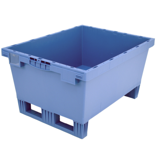 Im Euromaß. Aus bruchsicherem Polypropylen in taubenblau. Das Lagergut lässt sich durch die geschlossenen Wände vor Staub geschützt lagern und der Behälter lässt sich leicht reinigen. Boden geschlossen mit Verstärkung durch Verstärkungsrippen. Für das einfache Versetzen und Einfahren mit einem Stapler sorgen die Kufen. Platzsparend ineinander stapelbar. Für Rollenbahnen geeignet.