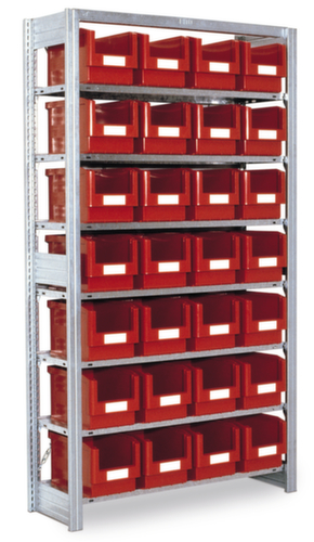 "metaDescription": "BITO Komplettregal - Anbaufeld, HxBxT 1850x958x324mm, 28 Kästen PP, Fachlast 50kg, einseitig, Ständer verzinkt, Ebenen verzinkt",