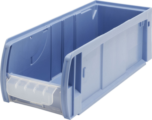 Aus bruchsicherem Polypropylen in taubenblau. Temperaturbeständig von -20 °C bis +80 °C. Stirnseitige Eingrifföffnung mit Schiebescheibe. Mit Etikettenhalter zur individuellen und klaren Beschriftung.