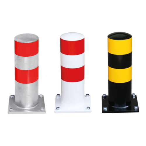 "longDescription": "<h2>Rammschutzpoller</h2><strong>ideal für Laderampenzufahrten als LKW-Parkhilfe</strong><br><ul><li><strong>Gute Sichtbarkeit</strong> durch farbige Reflexstreifen</li><li><strong>Extrem robust</strong> - aus feuerverzinktem Stahl</li><li><strong>Ortsfester Einsatz</strong> - mit Bodenplatte zum Aufdübeln</li></ul><br><strong>Sie haben die Wahl:</strong><br><ul><li><strong>Extrem strapazierfähige Oberfläche</strong> - wahlweise mit zusätzlicher Kunststoffbeschichtung</li></ul>",