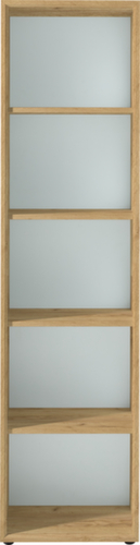 Die wichtigsten Maße des Büroregals GW-MONTERIA auf einen Blick:Leicht zugänglicher Stauraum für Akten und Arbeitsunterlagen auf 5 Ordnerhöhen. Die auf Ordnerhöhen abgestimmten Fachhöhen garantieren eine wirtschaftliche Ausnutzung der Lagerebenen. 3D-Rahmen mit Gehrung aus Spanplatte mit pflegeleichter Melaminharzbeschichtung. Fachbodenkanten durch schlagfeste ABS-Umleimer vor unschönen Rissen und Ausbrechen an den Kanten geschützt. Korpus mit Oberboden mit Sicherheitsglasauflage. Korpus in Navarra-Eiche/weiß. Ebenen in Navarra-Eiche. Unterbau Gleitern.