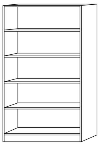 Die wichtigsten Maße des Aktenregals Sina auf einen Blick:Leicht zugänglicher Stauraum für Akten und Arbeitsunterlagen auf 5 Ordnerhöhen. Fachböden können im vorgegebenem Raster jederzeit nach Bedarf verstellt werden. Korpus in Nussbaum. Ebenen in Nussbaum. Unterbau mit Höhenausgleichsfüßen zur variablen Anpassung an unebenen Untergrund, z. B. durch Teppichkanten.