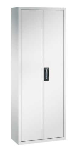 Die wichtigsten Maße des C+P Universalschrankes auf einen Blick:Der Schrankkorpus ist aus Stahlblech gefertigt und stabil verschweißt. Das macht die Konstruktion besonders robust und widerstandsfähig und somit langlebiger. Die verschweißten Ecken und Kanten des Korpus gewährleisten eine höhere Dichtigkeit und somit eine bessere Schutzfunktion gegen Staub, Feuchtigkeit und Schmutz als eine geschraubte Konstruktion. Zudem sind keine regelmäßigen Wartungsarbeiten und Nachjustierungen nötig. Hohe Flexibilität der Inneneinrichtung durch Verstellbarkeit der Fachhöhen im Raster von 10 mm. Ausgestattet mit Böden. Staubgeschützt zu schließen über Doppel-Flügeltür. Das innenliegende Kastenprofil und die allseitige Abkantung erhöhen die Steifigkeit der Türen und macht sie widerstandsfähiger gegen Verformungen. Dadurch können sie auch stärkeren Belastungen standhalten und bieten einen hohen Diebstahlschutz. Öffnen lässt sich der Magazinschrank mit Muldengriff. Verschließbar mit dem Griffschloss Ergo-Lock. Durch den großzügigen, ergonomischen Griffbügel lässt sich der Stahlschrank, auch mit Handschuhen, ganz einfach öffnen und durch den patentierten Mechanismus noch einfacher durch zudrücken wieder schließen. Für einen kontrollierten Zugriff auf den Inhalt ist das Ergo-Lock standardmäßig mit einem Sicherheitszylinderschloss ausgestattet. Die 3-Punkt-Verriegelung bietet hohe Stabilität und einen effektiven Einbruchschutz.