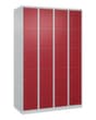 Die wichtigsten Maße des C+P Schließfachschrankes Classic Plus auf einen Blick:Korpus mit einfacher Flügeltür. Die innenliegenden Drehbolzen der einschlagenden Türen bieten den Vorteil einer sauberen Optik, da keine Schrauben oder Scharniere von außen sichtbar sind. Dadurch wird das Design des Schrankes nicht beeinträchtigt und das gesamte Möbelstück wirkt hochwertiger. Damit ist auch die glatte Oberfläche leichter zu reinigen, da keine Schmutz- oder Staubablagerungen an unzugänglichen Stellen zu befürchten sind. Jede Tür ist serienmäßig mit einer Anschlagsdämpfung ausgestattet, so dass, auch durch ein schwungvolles Schließen, die Tür nicht zuknallt. Das trägt nicht nur zu einer angenehmeren Geräuschkulisse bei, sondern schont auch den Stahlschrank vor Beschädigungen. Von der Natur inspiriert schafft der BIONIC Steel Frame eine besonders effiziente und stabile Konstruktion. Durch eine raffinierte innere Struktur aus Faltungen, Streben und Zwischenräumen, sowie höhere Materialstärke an entscheidenden Stellen, wie z. B. im vorderen Bereich der Seitenwände und in den Trennwand- und Kastenprofilen, wird die Verwindungssteifigkeit zusätzlich erhöht. Verschließbar mit Zylinderschloss. Für eine besonders schlanke und raumsparende Optik steht der Schrank ohne Sockel oder Füße direkt auf dem Boden. Lediglich Bodenausgleichsschrauben sorgen für einen wackelfreien Stand bei eventuellen Bodenunebenheiten. Der Schrankboden ist für einen erhöhten Korrosionsschutz zusätzlich verzinkt. Konstruktion aus Stahl, stabil verschweißt. Das macht die Konstruktion besonders robust und widerstandsfähig und somit langlebiger. Die verschweißten Ecken und Kanten des Korpus gewährleisten eine höhere Dichtigkeit und somit eine bessere Schutzfunktion gegen Staub, Feuchtigkeit und Schmutz als eine geschraubte Konstruktion. Zudem sind keine regelmäßigen Wartungsarbeiten und Nachjustierungen nötig. Korpus mit Einbrennlackierung in RAL7035 Lichtgrau. Front mit Einbrennlackierung in RAL3003 Rubinrot.