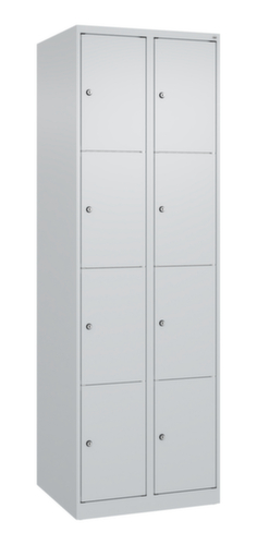 Die wichtigsten Maße des C+P Schließfachschrankes Classic Plus auf einen Blick:Korpus mit einfacher Flügeltür. Die innenliegenden Drehbolzen der einschlagenden Türen bieten den Vorteil einer sauberen Optik, da keine Schrauben oder Scharniere von außen sichtbar sind. Dadurch wird das Design des Schrankes nicht beeinträchtigt und das gesamte Möbelstück wirkt hochwertiger. Damit ist auch die glatte Oberfläche leichter zu reinigen, da keine Schmutz- oder Staubablagerungen an unzugänglichen Stellen zu befürchten sind. Jede Tür ist serienmäßig mit einer Anschlagsdämpfung ausgestattet, so dass, auch durch ein schwungvolles Schließen, die Tür nicht zuknallt. Das trägt nicht nur zu einer angenehmeren Geräuschkulisse bei, sondern schont auch den Stahlschrank vor Beschädigungen. Von der Natur inspiriert schafft der BIONIC Steel Frame eine besonders effiziente und stabile Konstruktion. Durch eine raffinierte innere Struktur aus Faltungen, Streben und Zwischenräumen, sowie höhere Materialstärke an entscheidenden Stellen, wie z. B. im vorderen Bereich der Seitenwände und in den Trennwand- und Kastenprofilen, wird die Verwindungssteifigkeit zusätzlich erhöht. Verschließbar mit Zylinderschloss. Für eine besonders schlanke und raumsparende Optik steht der Schrank ohne Sockel oder Füße direkt auf dem Boden. Lediglich Bodenausgleichsschrauben sorgen für einen wackelfreien Stand bei eventuellen Bodenunebenheiten. Der Schrankboden ist für einen erhöhten Korrosionsschutz zusätzlich verzinkt. Konstruktion aus Stahl, stabil verschweißt. Das macht die Konstruktion besonders robust und widerstandsfähig und somit langlebiger. Die verschweißten Ecken und Kanten des Korpus gewährleisten eine höhere Dichtigkeit und somit eine bessere Schutzfunktion gegen Staub, Feuchtigkeit und Schmutz als eine geschraubte Konstruktion. Zudem sind keine regelmäßigen Wartungsarbeiten und Nachjustierungen nötig. Korpus mit Einbrennlackierung in RAL7035 Lichtgrau. Front mit Einbrennlackierung in RAL7035 Lichtgrau.