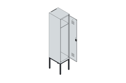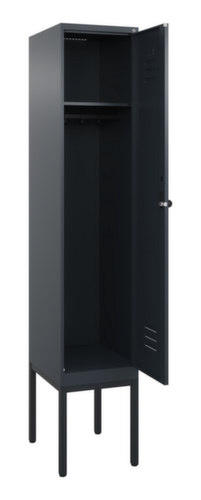 Die wichtigsten Maße des C+P Garderobenschranks Classic Plus auf einen Blick:Je Abteil ein festverschweißter Hutboden und darunter eine Kleiderstange mit 3 verdrehsicheren Doppelschiebehaken. Flügeltür mit Etikettenrahmen und Lüftungsschlitzen. Die innenliegenden Drehbolzen der einschlagenden Türen bieten den Vorteil einer sauberen Optik, da keine Schrauben oder Scharniere von außen sichtbar sind. Dadurch wird das Design des Schrankes nicht beeinträchtigt und das gesamte Möbelstück wirkt hochwertiger. Damit ist auch die glatte Oberfläche leichter zu reinigen, da keine Schmutz- oder Staubablagerungen an unzugänglichen Stellen zu befürchten sind. Jede Tür ist serienmäßig mit einer Anschlagsdämpfung ausgestattet, so dass, auch durch ein schwungvolles Schließen, die Tür nicht zuknallt. Das trägt nicht nur zu einer angenehmeren Geräuschkulisse bei, sondern schont auch den Stahlschrank vor Beschädigungen. Von der Natur inspiriert schafft der BIONIC Steel Frame eine besonders effiziente und stabile Konstruktion. Durch eine raffinierte innere Struktur aus Faltungen, Streben und Zwischenräumen, sowie höhere Materialstärke an entscheidenden Stellen, wie z. B. im vorderen Bereich der Seitenwände und in den Trennwand- und Kastenprofilen, wird die Verwindungssteifigkeit zusätzlich erhöht. Verschließbar mit Sicherheits-Drehriegel für Vorhängeschloss. Das Sicherheitsschloss ist besonders aufbruchsicher, da es im verschlossenen Zustand durchdreht und erst nach Entfernung des Schlosses einrastet. Passend für alle Vorhängeschlösser mit einer Bügelstärke von 6 - 8 mm. Die zusätzlichen Lüftungsöffnungen im Abteil, kombiniert mit den Lüftungsschlitzen in der Tür, verbessern den Luftstrom. Dadurch wird der Schrankinhalt besser belüftet und trocknet schneller, ohne unangenehme Gerüche zu verursachen. Das untergebaute Fußgestell reduziert mögliche Ansammlungen von Schmutz und Staub, da eine vollflächige Reinigung einfach möglich ist. Zudem wird zusätzlicher Stauraum unter dem Schrank geschaffen. Schuhe und Taschen stehen nicht mehr im Raum und stellen weniger Stolpergefahr dar. Konstruktion aus Stahl, stabil verschweißt. Das macht die Konstruktion besonders robust und widerstandsfähig und somit langlebiger. Die verschweißten Ecken und Kanten des Korpus gewährleisten eine höhere Dichtigkeit und somit eine bessere Schutzfunktion gegen Staub, Feuchtigkeit und Schmutz als eine geschraubte Konstruktion. Zudem sind keine regelmäßigen Wartungsarbeiten und Nachjustierungen nötig. Korpus mit Einbrennlackierung in RAL7016 Anthrazitgrau, Front mit Einbrennlackierung in RAL7016 Anthrazitgrau.