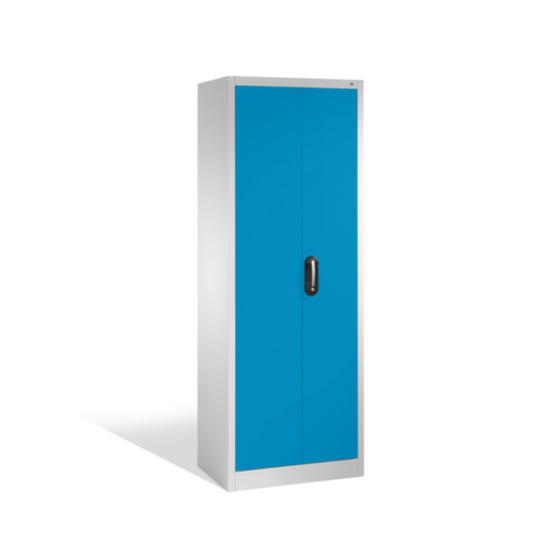 Die wichtigsten Maße des C+P Universalschrankes ERGO auf einen Blick:Der Schrankkorpus ist aus Stahlblech gefertigt und stabil verschweißt. Das macht die Konstruktion besonders robust und widerstandsfähig und somit langlebiger. Die verschweißten Ecken und Kanten des Korpus gewährleisten eine höhere Dichtigkeit und somit eine bessere Schutzfunktion gegen Staub, Feuchtigkeit und Schmutz als eine geschraubte Konstruktion. Zudem sind keine regelmäßigen Wartungsarbeiten und Nachjustierungen nötig. Hohe Flexibilität der Inneneinrichtung durch Verstellbarkeit der Fachhöhen im Raster von 15 mm. Ausgestattet mit Böden. Über die Doppelflügeltür ist der Zugriff auf den Schrankinhalt besonders komfortabel. Das innenliegende Kastenprofil und die allseitige Abkantung erhöhen die Steifigkeit der Türen und macht sie widerstandsfähiger gegen Verformungen. Dadurch können sie auch stärkeren Belastungen standhalten und bieten einen hohen Diebstahlschutz. Verschließbar mit dem Griffschloss Ergo-Lock. Durch den großzügigen, ergonomischen Griffbügel lässt sich der Stahlschrank, auch mit Handschuhen, ganz einfach öffnen und durch den patentierten Mechanismus noch einfacher durch zudrücken wieder schließen. Für einen kontrollierten Zugriff auf den Inhalt ist das Ergo-Lock standardmäßig mit einem Sicherheitszylinderschloss ausgestattet. Die 3-Punkt-Verriegelung bietet hohe Stabilität und einen effektiven Einbruchschutz. Der untergebaute Sockel sorgt dafür, dass das Gewicht des Schrankes gleichmäßig auf dem Boden verteilt wird. Dies erhöht die Stabilität und der Schrank kann schwerer Lasten aufnehmen, als ein Schrank mit Füßen. Außerdem können Schmutz, Staub und Feuchtigkeit nicht unter den Schrank gelangen, was die Reinigungsfläche verkleinert.