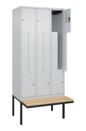 Die Schränke der Serie Classic Plus bieten Ihnen weit mehr als nur die typischen Basisanforderungen. Die Konstruktion ist verschweißt und damit besonders stabil und langlebig. Jedoch müssen Sie dabei nicht auf die Ästhetik verzichten. Im Industrial Design mit klassischen Lüftungsschlitzen, schmalen Seitenkanten und einschlagenden Türen bieten die Umkleideschränke gerade in Reihenstellung eine ansprechende, homogene Optik. Die Z-Garderoben sind eine platzsparende und effiziente Lösung für eng bemessene Umkleideräume oder Personalgarderoben. Der Raumsparschrank bietet auf gleicher Stellfläche pro Abteil 2 Fächer für 2 Personen als Unterbringungsmöglichkeiten für persönliche Gegenstände. Im Gegensatz zum Schließfach ist dank der Z-Form aber auch das Hängen längerer Kleidungsstücke kein Problem