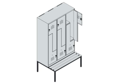 Die Schränke der Serie Classic Plus bieten Ihnen weit mehr als nur die typischen Basisanforderungen. Die Konstruktion ist verschweißt und damit besonders stabil und langlebig. Jedoch müssen Sie dabei nicht auf die Ästhetik verzichten. Im Industrial Design mit klassischen Lüftungsschlitzen, schmalen Seitenkanten und einschlagenden Türen bieten die Umkleideschränke gerade in Reihenstellung eine ansprechende, homogene Optik. Die Z-Garderoben sind eine platzsparende und effiziente Lösung für eng bemessene Umkleideräume oder Personalgarderoben. Der Raumsparschrank bietet auf gleicher Stellfläche pro Abteil 2 Fächer für 2 Personen als Unterbringungsmöglichkeiten für persönliche Gegenstände. Im Gegensatz zum Schließfach ist dank der Z-Form aber auch das Hängen längerer Kleidungsstücke kein Problem