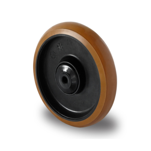 "description": "Tragl. 250kg, Ø 125mm, Naben L 50mm, PU-Bereifung, Kugellager, Felge Polyamid, Fadenschutz",
