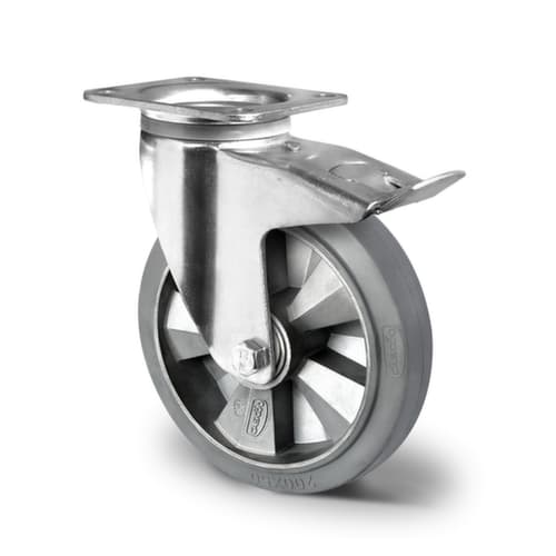 "metaDescription": "Cascoo Lenkrolle mit Feststeller - Tragl. 300kg, Elastik-Bereifung, Schwenklager, Ø 125mm, Naben L 50mm, Totalfestst., Felge Alu, m. Platte",