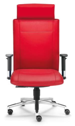 "description": "Stoff-m. Nackenstütze schwarz, Sitz Stoff rot, Sitz HxBxT 410-530x570x440mm, m. Armlehnen, Fußkreuz Alu, Rollen",
