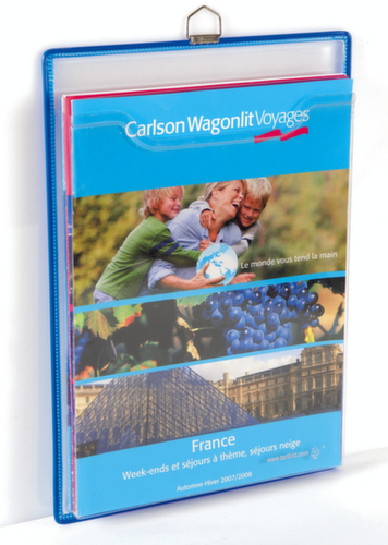 "longDescription": "<h2>Hänge-Prospekttasche</h2><strong>die wirkungsvolle Werbepräsentation</strong><br><ul><li><strong>Für einzelne Blätter oder ganze Broschüren</strong></li><li><strong>Robust und auffällig</strong> - Rahmen aus Stahldraht mit farbiger Kunststoffummantelung</li><li><strong>Einfache Befestigung</strong> über Metallösen</li><li>Für bis zu 150 Blatt 80 g/m²</li><li>Tafel aus Kunststoff</li></ul>",