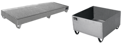 "longDescription": "<h2>Auffangwanne</h2><ul><li>Auffangwanne aus V4A-Edelstahl 2 mm stark, Oberfläche gebeizt</li><li>Gitterrost verzinkt oder aus Edelstahl</li><li>Unterfahrhöhe 100 mm für den Staplertransport</li></ul>",