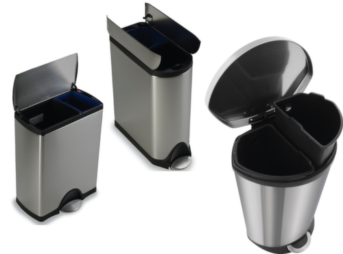 "metaDescription": "Edelstahl-Tretabfallbehälter mit 2 Sammeleinheiten - in verschiedene Ausführungen",