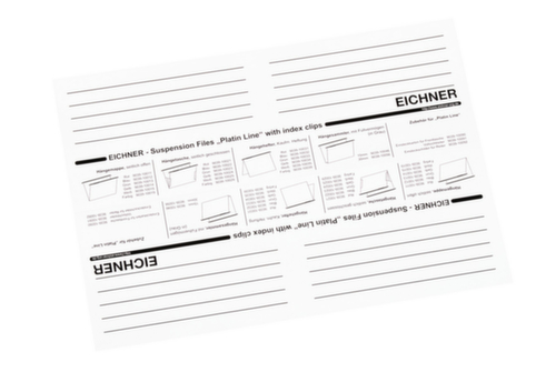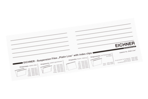 "longDescription": "<h2>EICHNER Einsteckschild für Sichttasche</h2>Geeignet für für Hängemappen, Personalhefter und Kreditakten. <ul><li>Ausrichtung im Querformat</li><li>Höhe x Breite 215 x 300 mm</li><li>Aus Papier in weiß</li><li>beidseitig beschreibbar</li><li>zum Einstecken</li></ul>",