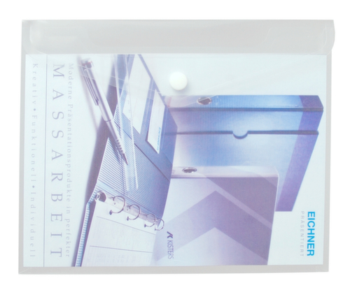 "longDescription": "<h2>Sichttasche</h2><strong>aus umweltfreundlichem Polypropylen</strong><br><ul><li><strong>Geräumig und sicher</strong> - für ausreichend Platz etwas größer als DIN-Format, sicher verschlossen durch praktischen Verschluss</li></ul> - <strong>Bestens aufbewahrt</strong> sind hier Ihre Dokumente und Akten, Papiere, Ausweise, Karten und mehr<br><ul><li><strong>Alles sichtbar</strong> - mit glasklarer Oberfläche</li></ul><br><strong>Sie haben die Wahl:</strong><br><ul><li><strong>Für kleine oder große Infos</strong> - wahlweise im Format DIN A5 oder DIN A4</li><li><strong>Sicher verschlossen</strong> - wahlweise mit Klett- oder Druckknopfverschluss</li></ul>",