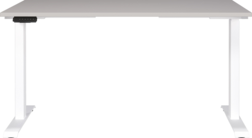 Platte aus Spanplatte mit pflegeleichter Melaminharzbeschichtung in Dekor Kaschmir-Dekor. Plattenform eckig. Kante Alle Kanten sind durch schlagfeste ABS-Umleimer vor unschönen Rissen und Ausbrechen geschützt. C-Fußgestell aus Metall mit schlag- und kratzfester Pulverbeschichtung in weiß. Höhenverstellung durch 2 Elektromotoren unterstützen Sie bei einer komfortablen Höhenverstellung auf Knopfdruck. Der automatische Kollisionsschutz stoppt sofort bei Widerstand von oben oder unten und sorgt somit für absolute Sicherheit. Gestell mit Kunststoffgleiter.