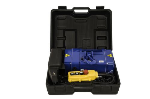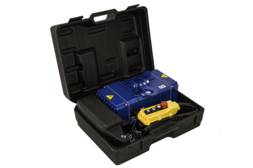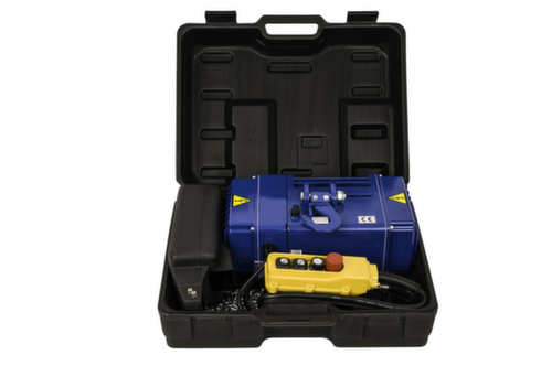 "longDescription": "<h2>Elektro-Kettenzug</h2><strong>einfach zu transportieren dank leichter und kompakter Bauweise</strong><br><ul><li><strong>Genaues Positionieren</strong> durch Sanftanlauf</li><li><strong>Überlastsicherung</strong> durch Rutschkupplung</li><li>Endschalter für oberste und unterste Hakenendstellung</li><li>Lieferung mit Kettenspeicher für 3 m Standardhub und Transportkoffer, HxBxT 200x390x470 mm</li></ul>",