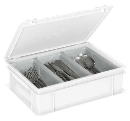 "metaTitle": "Euronorm-Koffer mit Besteckeinsatz, weiß, HxLxB 130x400x300 mm - Stapelbehälter",