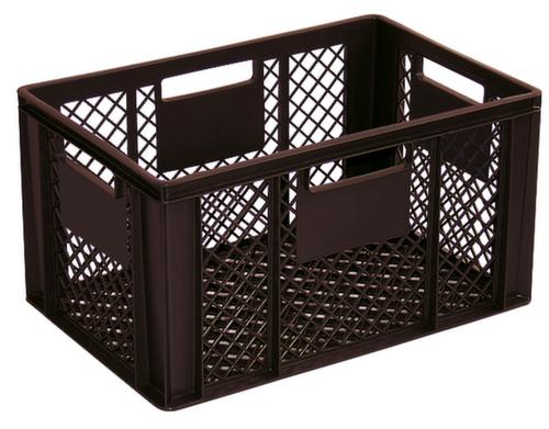 Maßlich auf die Europalette abgestimmt. Aus bruchsicherem Polypropylen in braun. Wände durchbrochen, Boden durchbrochen. Boden mit Verstärkung durch Verstärkungsrippen. Einfacher Transport durch Muschelgriffe. Mehrfach stapelbar. Lebensmittelgeeignet. Für Rollenbahnen geeignet. Temperaturbeständig -20 °C bis +80 °C. Geeignet für verschiedene Stoffe, bitte anfragen. recycelbar.
