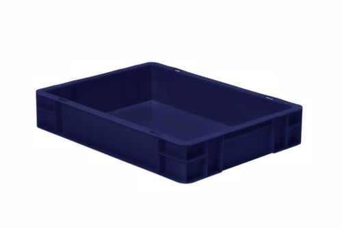 Maßlich auf die Europalette abgestimmt. Aus bruchsicherem Polypropylen in blau. Wände geschlossen, Boden geschlossen. Mehrfach stapelbar. Lebensmittelgeeignet. Für Rollenbahnen geeignet. Temperaturbeständig -20 °C bis +80 °C.