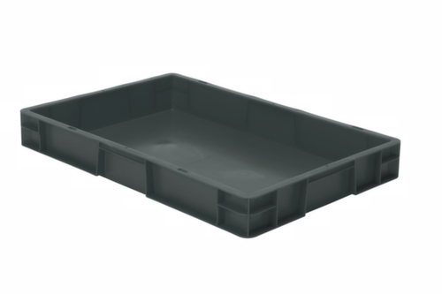 Maßlich auf die Europalette abgestimmt. Aus bruchsicherem Polypropylen in grau. Wände geschlossen, Boden geschlossen. Mehrfach stapelbar. Lebensmittelgeeignet. Für Rollenbahnen geeignet. Temperaturbeständig -20 °C bis +80 °C.